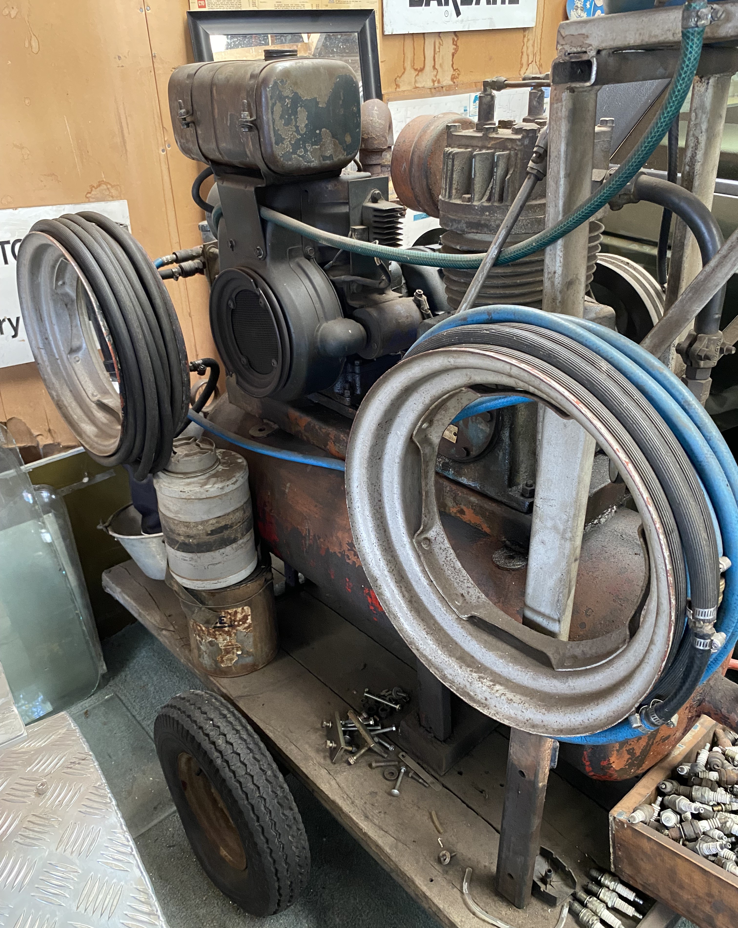 To Be Auctiioned: Assortment of Garden Tools, Woodworking Machinery & Tools, Masport Quickcut Ride On Mower (Project), Homebuilt Trike Motorbike (Project), Large Air Compressor (on trailer), HKO7OR Silent Drive Diesel Radiant Heater, Flood Lights, Salter Scales, Hitachi Steel Dropsaw, Vice, Assortment of Mechanical Tools, Drill Press, Double Ended Grinder, Welder, Drums of Oil & Drum Pumps, Selection of Old Mechanical Signs, Large Selection of Nuts & Bolts along with the usual Mechanical Sundries collected over many years